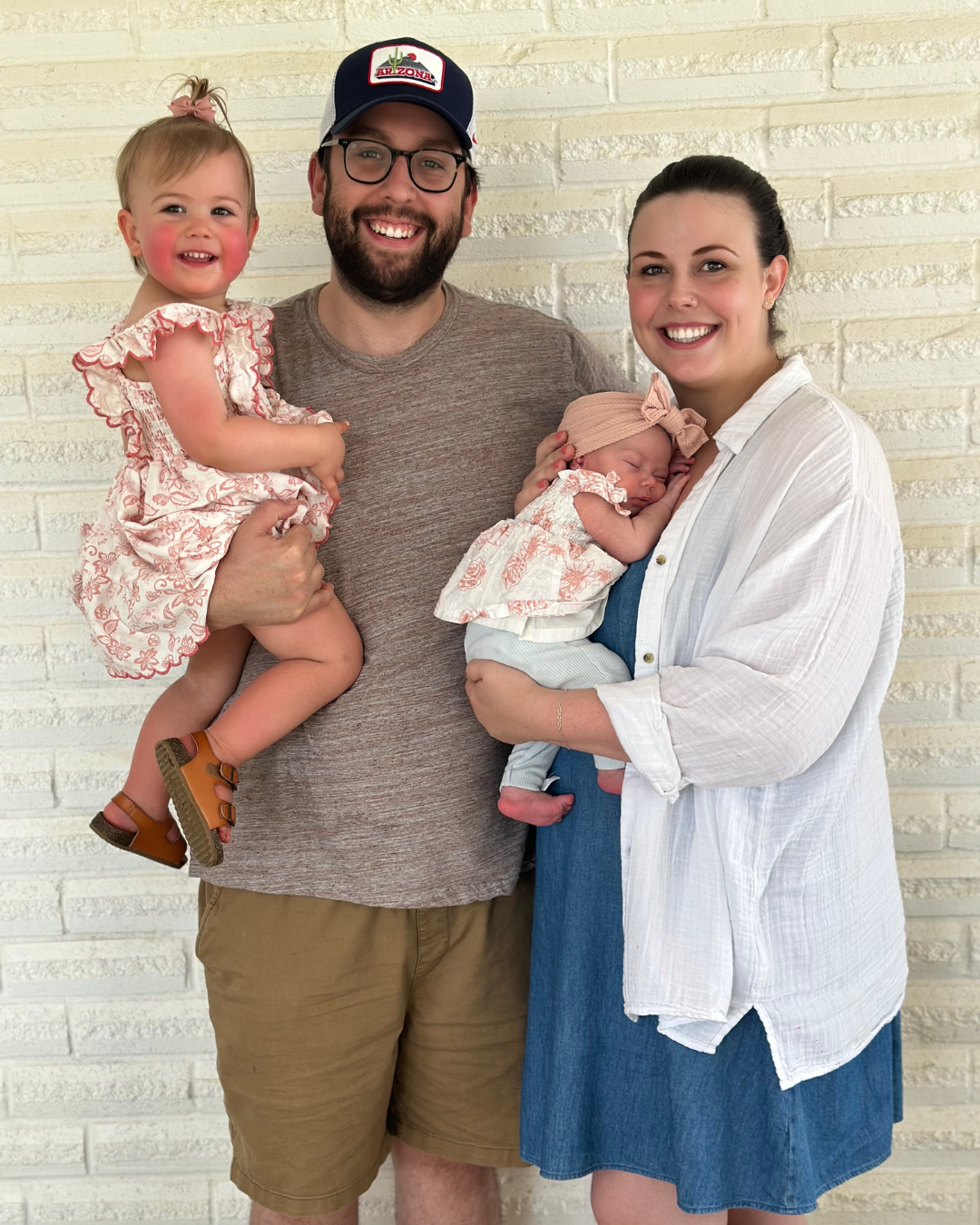 I live just outside of Austin with my husband and our two girls, who are two years old and a few months new. I stay home with them full-time, and this business gives me a creative outlet that fits into the rhythm of our days.