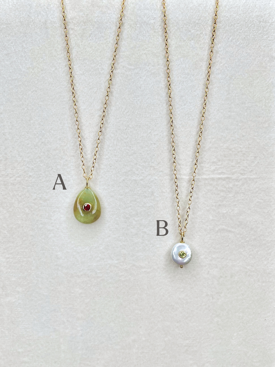 Two genuine gemstones in a single pendant, chosen to bring out the best in each other. The setting stays minimal so the pairing can stand out.