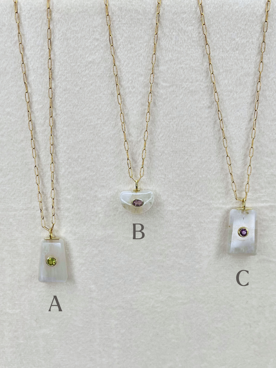 Two genuine gemstones in a single pendant, chosen to bring out the best in each other. The setting stays minimal so the pairing can stand out.