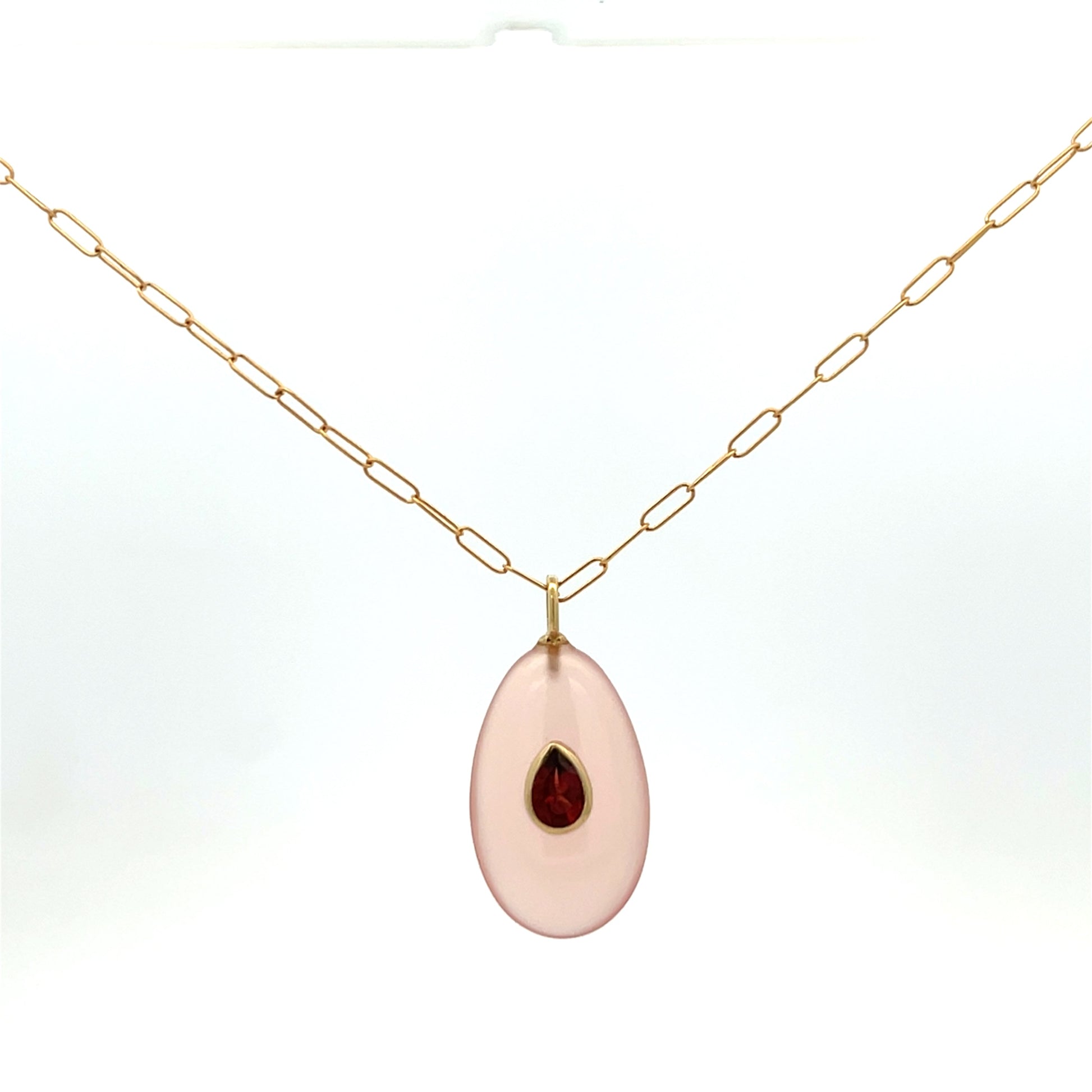 Two genuine gemstones in a single pendant, chosen to bring out the best in each other. The setting stays minimal so the pairing can stand out.